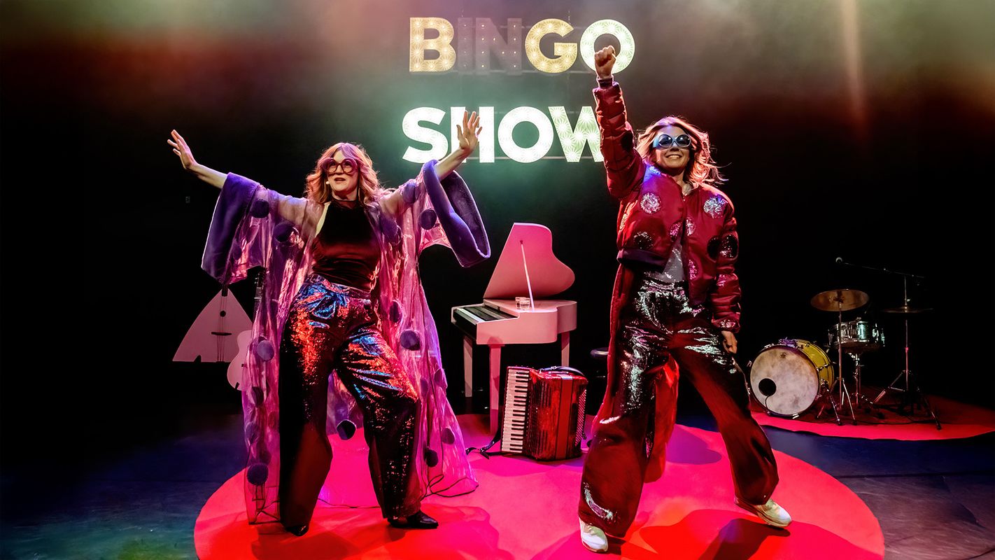 Dit duo blinkt uit in de combinatie van klassieke én hypermoderne muziek. Hun voorstellingen zijn humoristisch én ontroerend. Virtuoos én verrukkelijk plat. Samen spelen ze meer dan twintig instrumenten, waaronder de banjo, viool, piano, accordeon, balalaika, zingende zaag, autoharp en neusfluit. De Bingo Show is de zesde theaterproductie van Maartje en Kine.